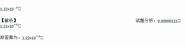 2015年10月.我国本土科学家屠呦呦荣获诺贝尔生理学或医学奖,她创制新型抗疟药青蒿素为人类作出了突出贡献.疟原虫早期期滋养体的直径约为0.00000122米,这个数字用科学记数法表示为 米.
