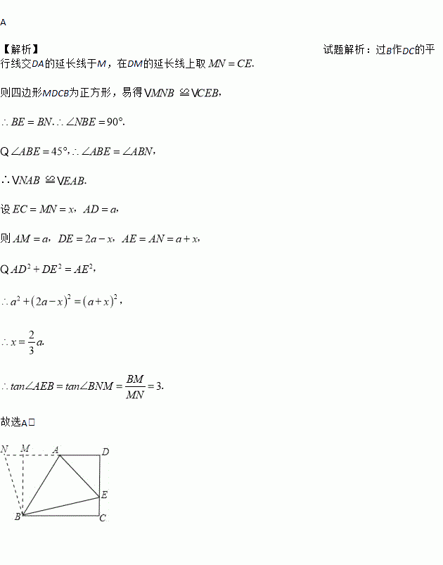 如图在梯形ABCD中,AD∥BC,AD⊥CD,BC=CD=2AD,E是CD上一点,∠ABE=45°,则tan∠AEB的值等于( )