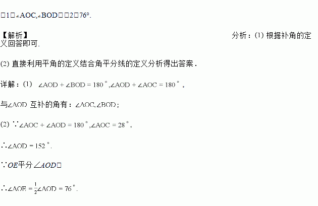 (1)写出图中所有与∠AOD互补的角;