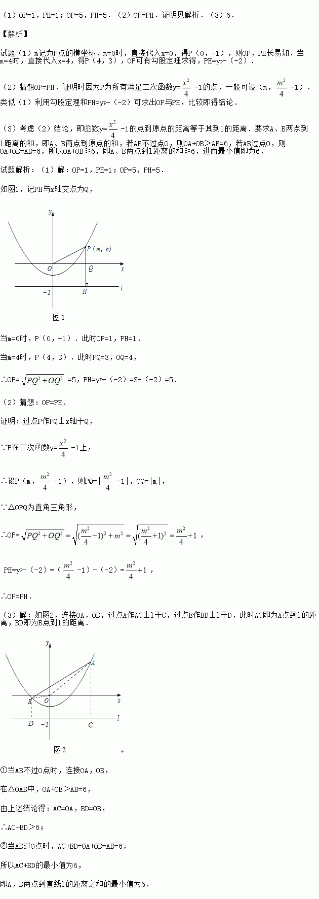 -1上任意一点,l是过点(0,-2)且与x轴平行的直线,过点P作直线PH⊥l,垂足为H.
