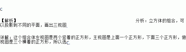 如左图是由4个大小相同的正方体组合而成的几何体,其主视图是( )