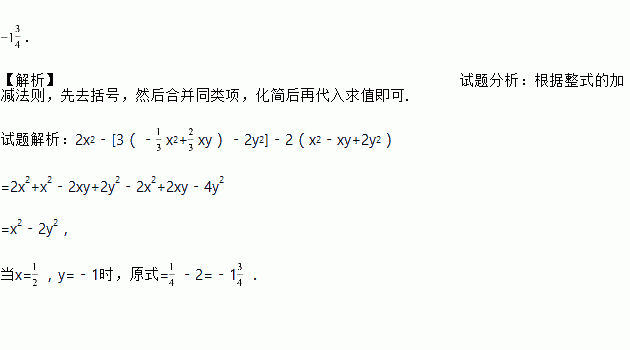 xy)﹣2y2]﹣2(x2﹣xy+2y2),其中x=