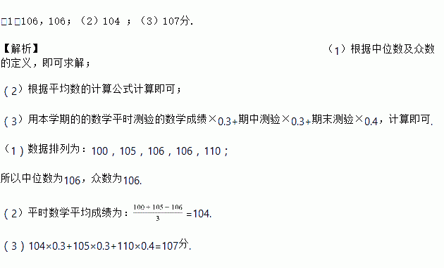 成绩 | 100 | 106 | 106 | 105 | 110 |