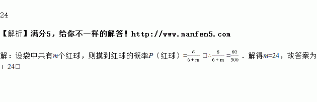 儿童节期间,游乐场里有一种游戏的规则是:在一个装有6个红球和若干白球(每个球除颜色外,其它都相同)的袋中,随机摸一个球,摸到一个红球就得欢动世界通票一张,已知参加这种游戏的有300人,游乐场为此游戏发放欢动世界通票60张,请你通过计算估计袋中白球的数量是_____个.