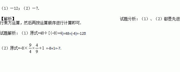 计算:(1)48÷[(-2)3-(-4)]; (2).