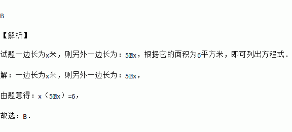 用10米长的铝材制成一个矩形窗框,使它的面积为6平方米.若设它的一条边长为x米,则根据题意可列出关于x的方程是( ).