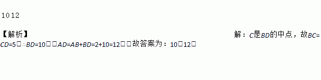 如图,若AB=2 cm,BC=5 cm,C是BD的中点,则BD=_______cm,AD=_______cm.