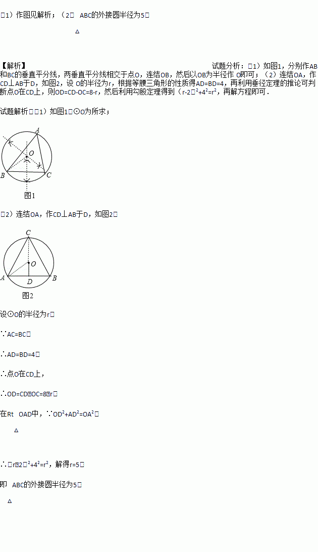 (2)若AC=BC,AB=8,C到AB的距离是2,求△ABC的外接圆半径.