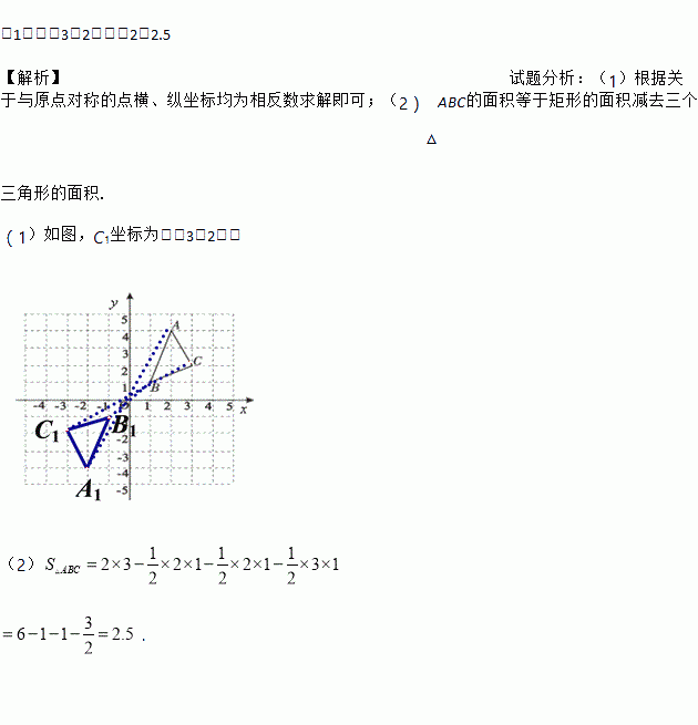 (1)作出△ABC关于原点O对称的△A1B1C1,并写出点C1的坐标;