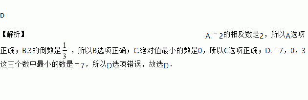 D. ﹣7,0,3这三个数中最小的数是0