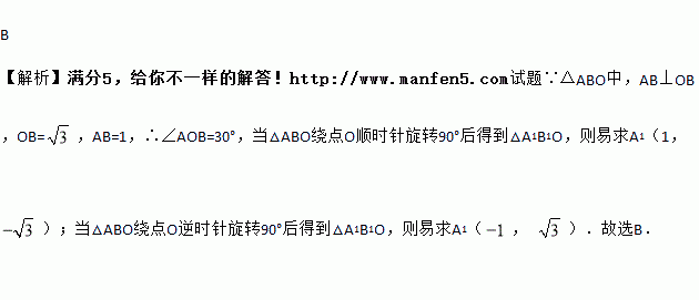 ,AB=1.将△ABO绕O点旋转90°后得到△A1B1O,则点A1的坐标为( )