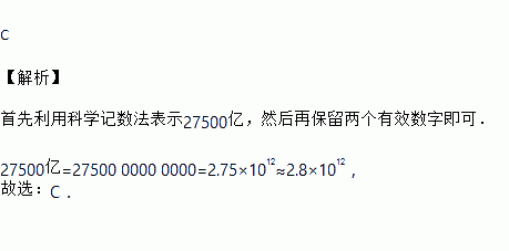 我国是世界上严重缺水的国家之一,目前我国年可利用的淡水资源总量为27500亿米,27500亿这个数保留两个有效数字为