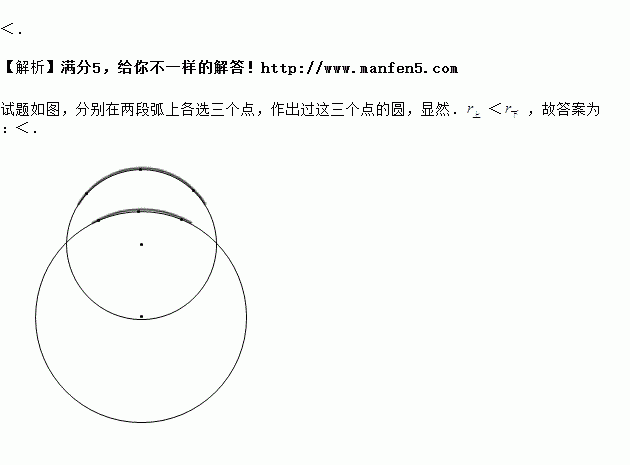 如图所示的两段弧中,位于上方的弧半径为,下方的弧半径为,则 .(填“>“,”“=”“<”)