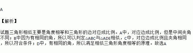 如图,下列条件不能判定△ABC与△ADE相似的是( )