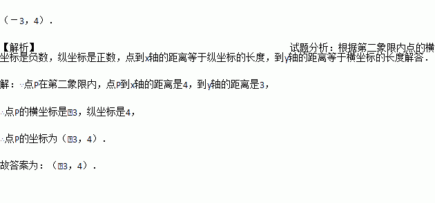 如果点P在第二象限内,点P到x轴的距离是4,到y轴的距离是3,那么点P的坐标为 .