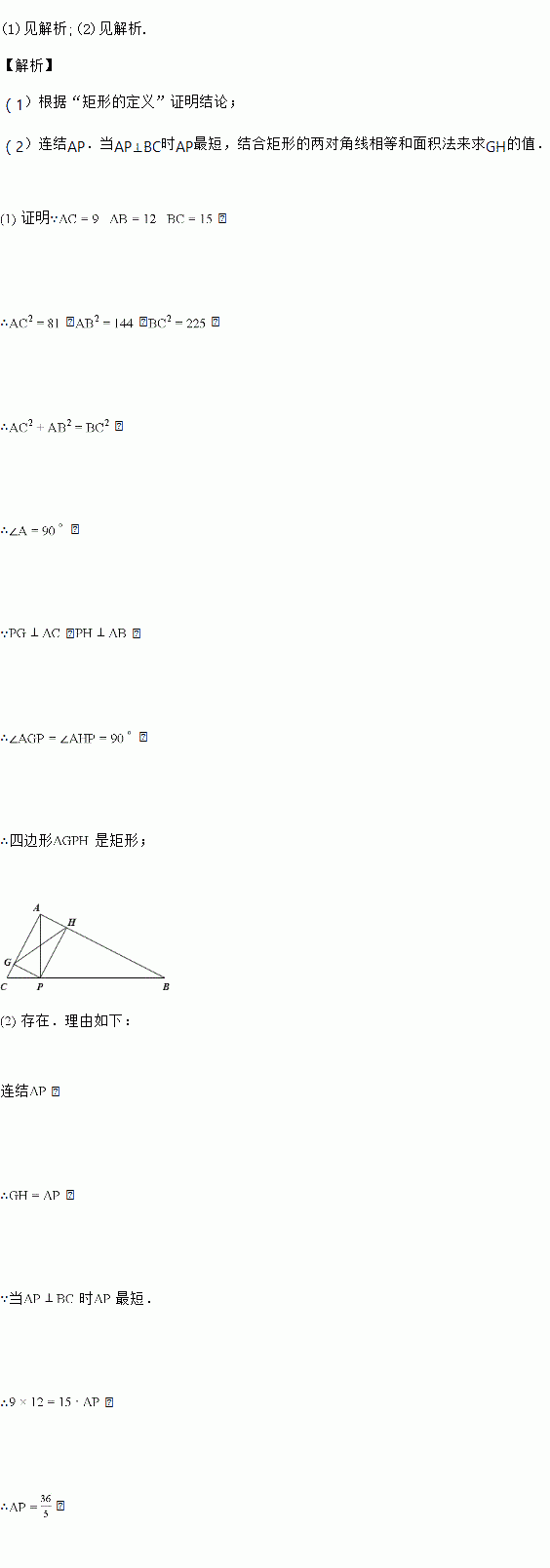 如图,在△ABC中,AC=9,AB=12,BC=15,P为BC边上一动点,PG⊥AC于点G,PH⊥AB于点H.