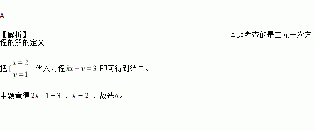 已知是方程kx﹣y=3的解,那么k的值是( )