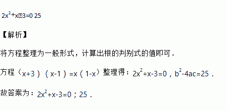 把方程(x+3)(x﹣1)=x(1﹣x)整理成ax2+bx+c=0的形式_____,b2﹣4ac的值是_____.