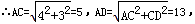 ∵∠B=∠ACD=90°,AB=4,BC=3,CD=12,![]()