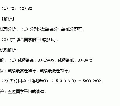 张老师把七年级(一)班五名同学的成绩简记为:+15,-3,0,+6,-8,又知道记为0的成绩表示80分,正数表示超过80分,