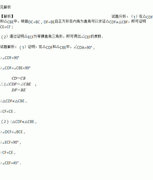 已知,如图,四边形ABCD是正方形,E,F分别是AB和AD延长线上的点,且BE=DF.