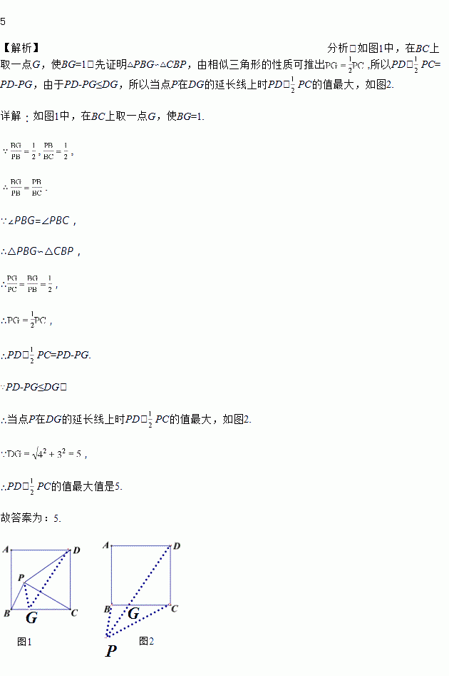 如图,已知正方形ABCD的边长为4,点P为平面上任意一点,PB=2,则PD﹣PC的最大值为_____.