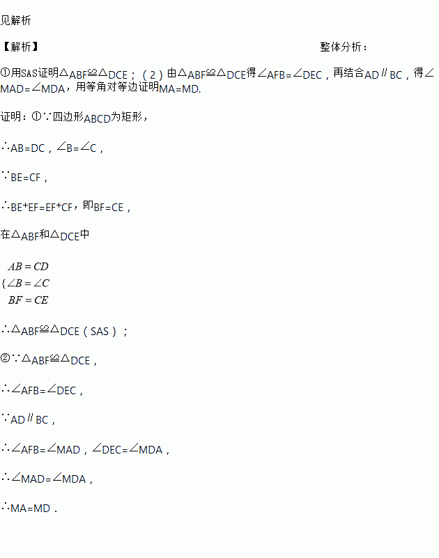 如图,在矩形ABCD中,点E.点F在BC边上,且BE=CF,AF,DE交于点M.求证: