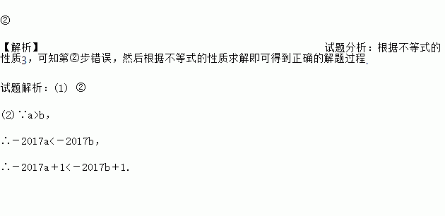 所以-2017a>-2017b,②