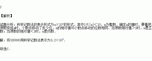 (2011秋•曲靖期末)2010年11月举办国际花卉博览会,其间展出约320000株新鲜花卉、珍贵盆景、罕见植株,320000这个数用科学记数法表示,结果正确的是( )