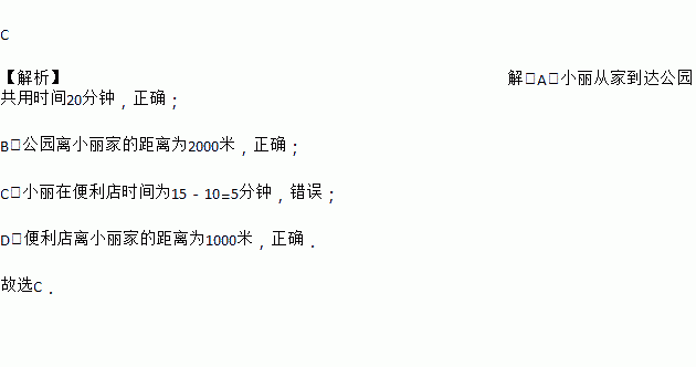 A. 小丽从家到达公园共用时间 20 分钟