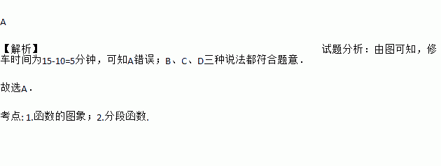 某天小明骑自行车上学,途中因自行车发生故障,修车耽误了一段时间后继续骑行,按时赶到了学校.如图描述了他上学的情景,下列说法中错误的是( )