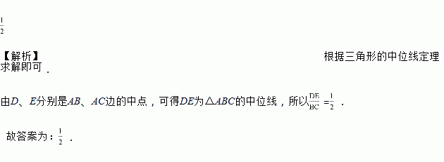 已知△ABC中,D、E分别是AB、AC边的中点,则=_____.