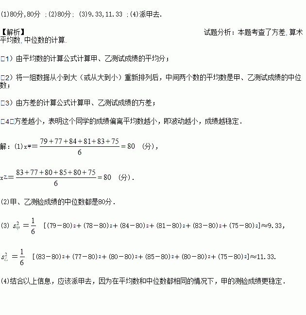(2)д³ö¼×¡¢ÒÒ²âÑé³É¼¨µÄÖÐλÊý£®