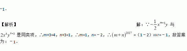 若与是同类项,则=______.