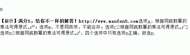 A. t5·t5 = 2t5 B. t4+t2 = t 6 C. t3·t4 = t12 D. t2·t3 = t5