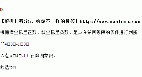在平面直角坐标系中,点A(4,﹣1)在( )