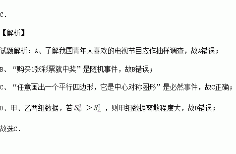C.“任意画出一个平行四边形,它是中心对称图形”是必然事件
