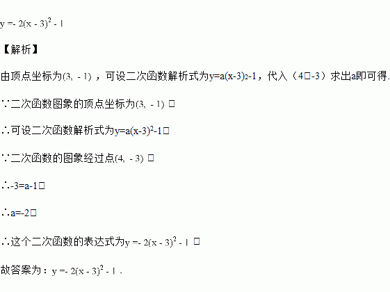 二次函数的图象经过点,它的顶点坐标为,则这个二次函数的表达式为________.