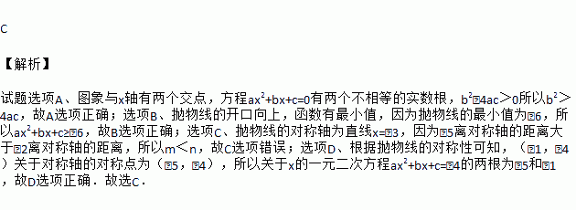 D. 关于x的一元二次方程ax2+bx+c=﹣4的两根为﹣5和﹣1