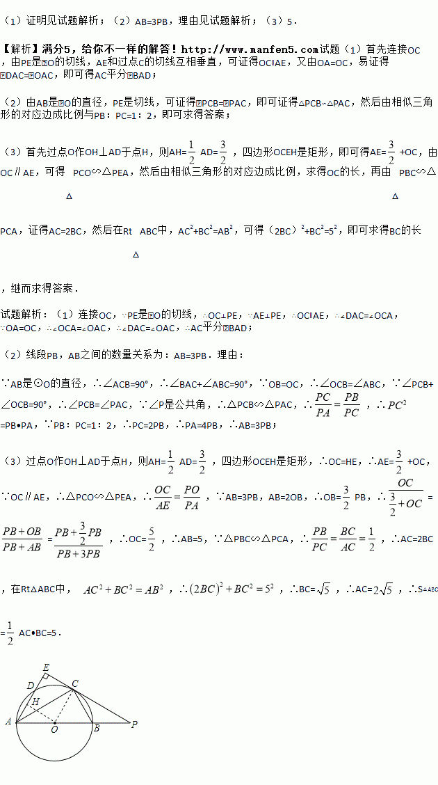 (2)探究线段PB,AB之间的数量关系,并说明理由;