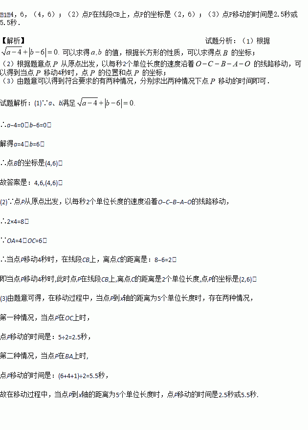 (2)当点P移动4秒时,请指出点P的位置,并求出点P的坐标;