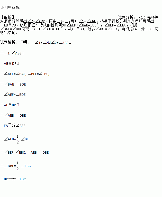 如图,∠1=∠2,∠BAE=∠BDE,EA平分∠BEF.求证:BD平分∠EBC.