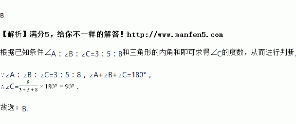 △ABC中,∠A:∠B:∠C=3:5:8,则△ABC是( )
