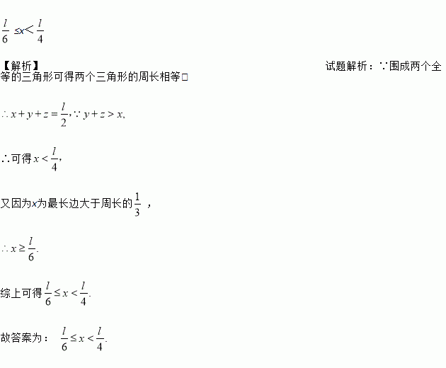 长为l的一根绳,恰好可围成两个全等三角形,则其中一个三角形的最长边x的取值范围为__________.