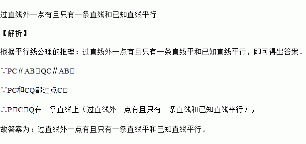 如图,PC∥AB,QC∥AB,则点P、C、Q在一条直线上.理由是______________.
