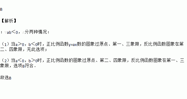 若ab<0,则正比例函数y=ax与反比例函数y=在同一坐标系中的大致图象可能是( )