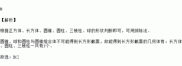 用一个平面去截下列六个几何体,能得到长方形截面的几何体有( )