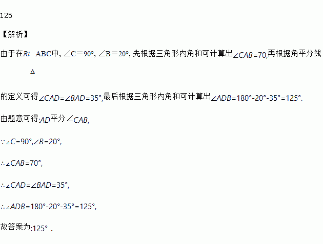 如图,在Rt△ABC中,∠C=90°,∠B=20°,以点A为圆心,任意长为半径画弧分别交AB,AC于点M,N,再分别以点M,N为圆心,大于