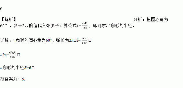若扇形的圆心角为60°,弧长为2π,则扇形的半径为________;