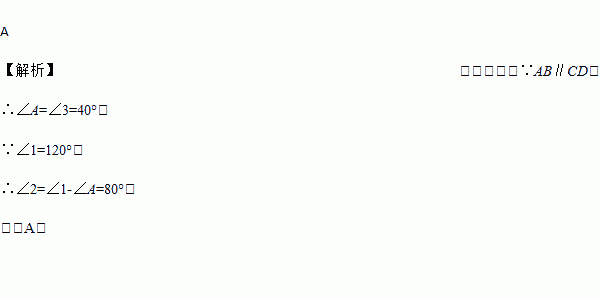 如图是婴儿车的平面示意图,其中AB∥CD,∠1=120°,∠3=40°,那么∠2的度数为( )